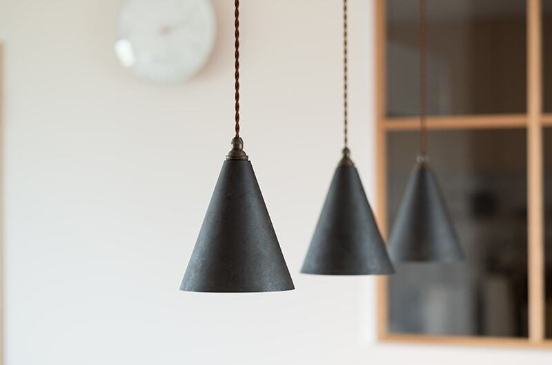 ホコリがつもりやすいペンダントランプですが、少々のホコリは鋳肌の風合いと馴染んで気になりません。内側の仕上げは光が綺麗に反射するように削りだしています。