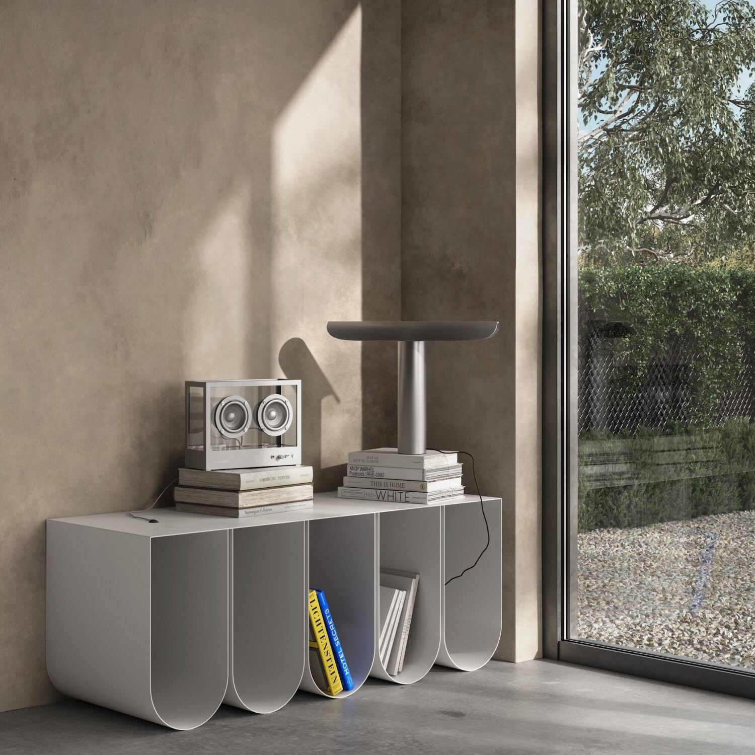 アルミ素地仕上げの新しいスピーカーです。メタリックなインテリア デザインのトレンドを取り入れており、現代の住宅や空間に理想的なアイテムとなっています。