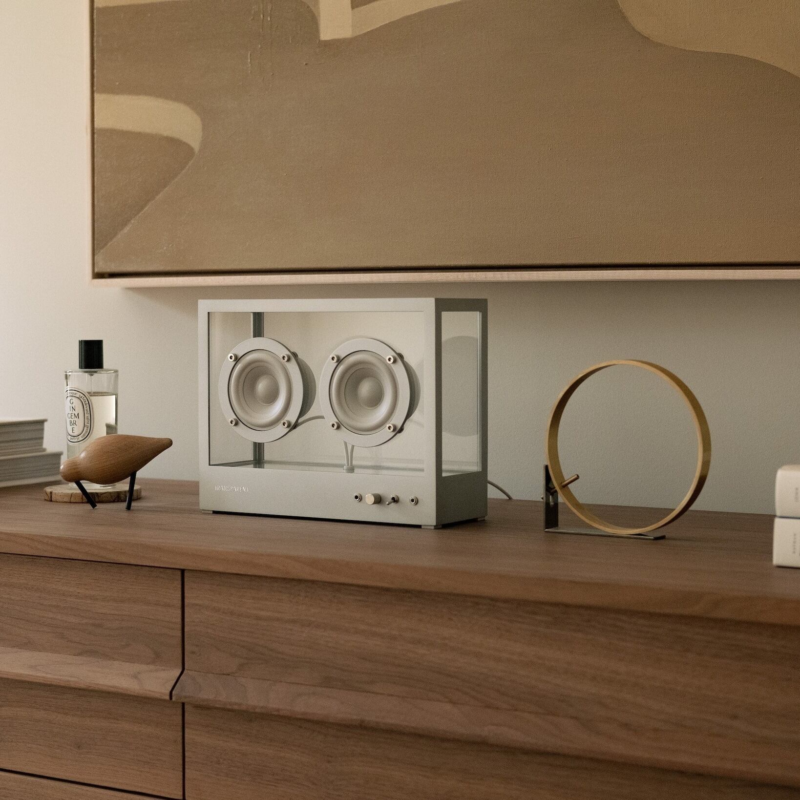 スモール トランスペアレント スピーカーは、細部に至るまで繊細にデザインされています。この製品は、アルミニウムフレームと強化ガラスで構成され、各オーディオパーツも含め全てが洗練されています。また、優れたサウンド技術と同じくらい内部パーツがオブジェとなるよう緻密に設計されていて、しかも最新のデジタル技術にオーディオをアップグレードしていくことが可能です。例えば付属のBluetooth™5.0チップがアップデートされた場合、そのBluetooth™チップのみを交換することができます。また今後開発されていくあらゆる技術にも対応し、スモール トランスペアレント スピーカーは時間が経つにつれてさらに高性能スピーカーへと進化していきます。