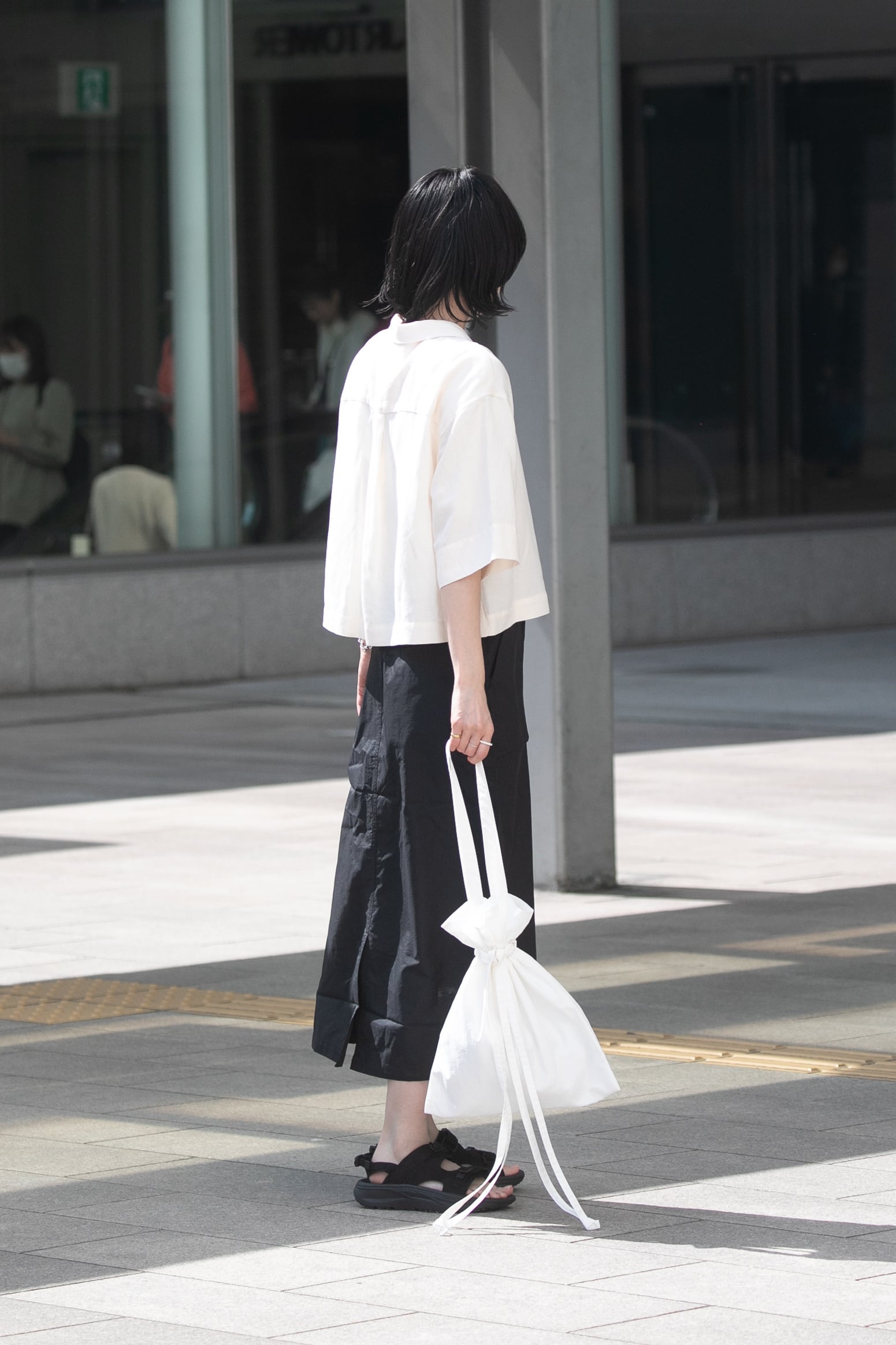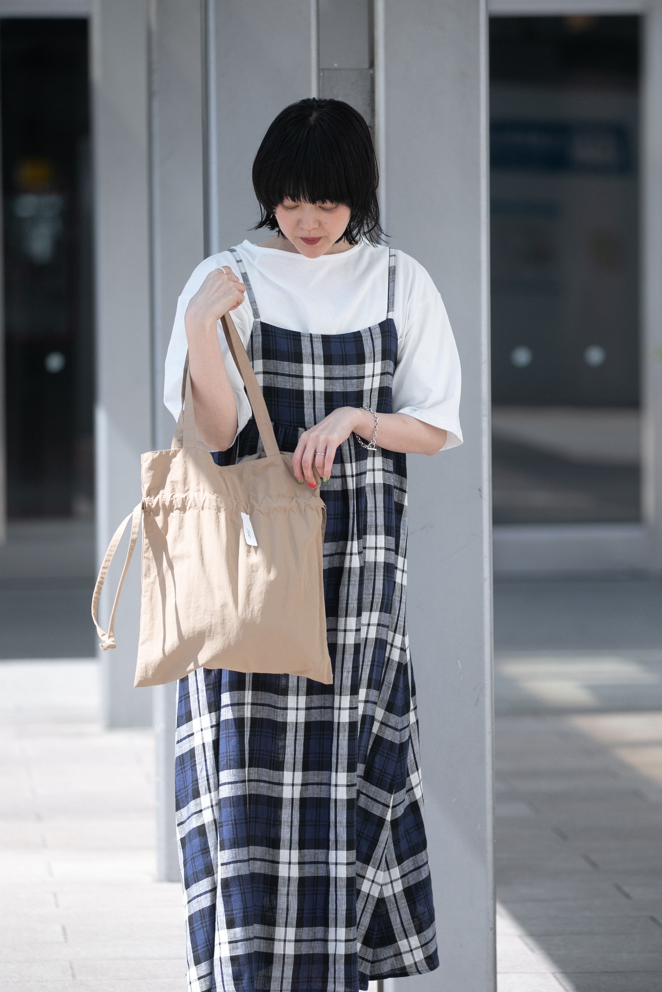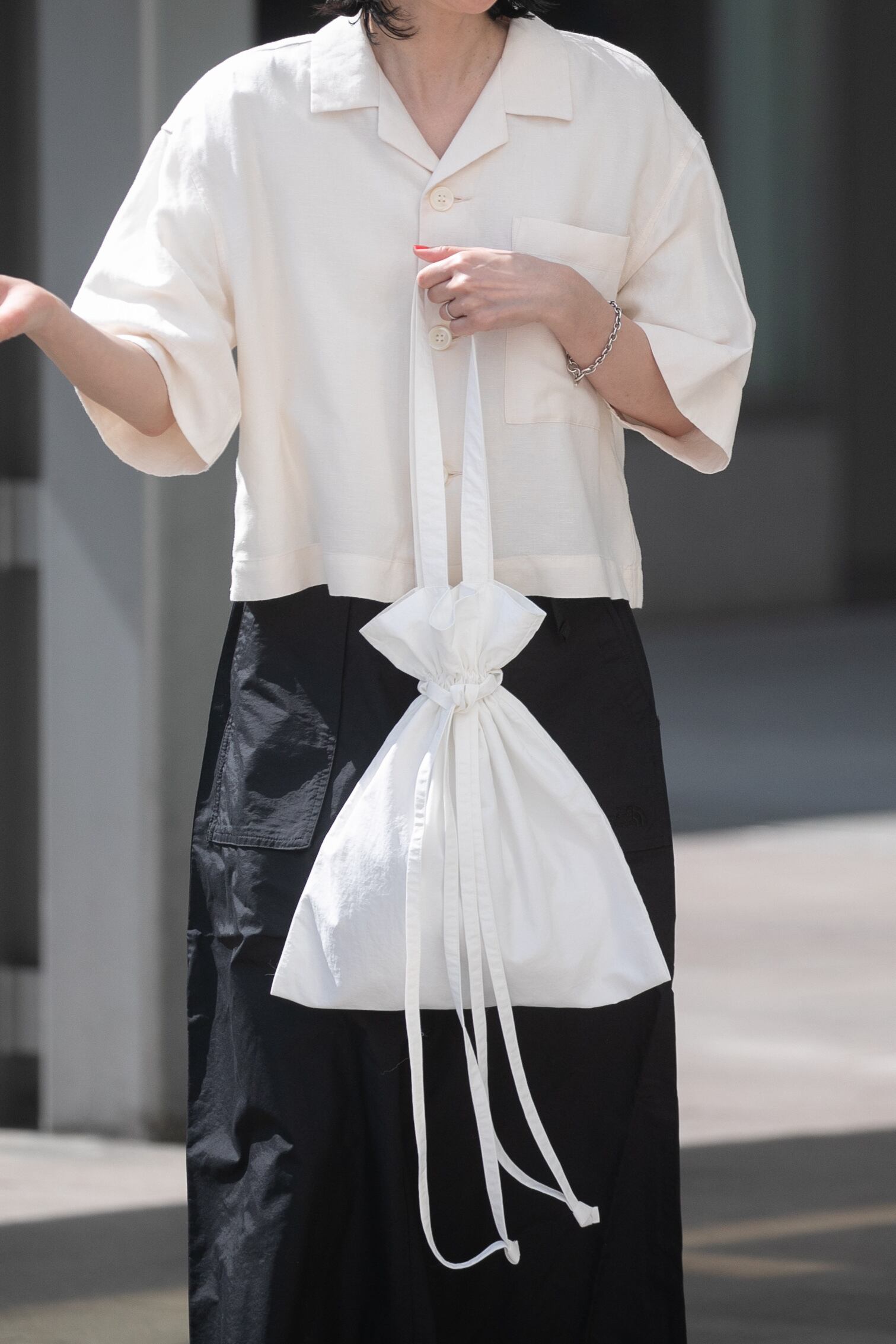 トートバッグとしても、紐を結び巾着バッグとしても使える2way仕様です。