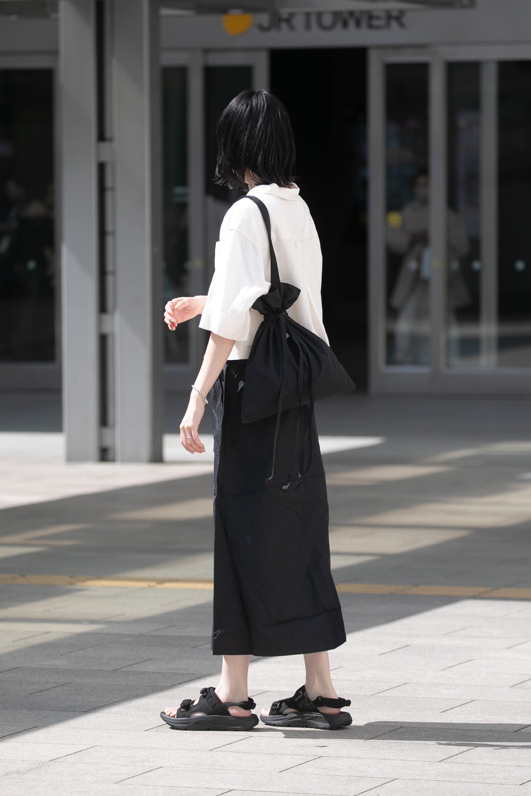 SUUオリジナルのナイロン巾着トートです。ショルダー掛けが出来る長いハンドルも特徴です。